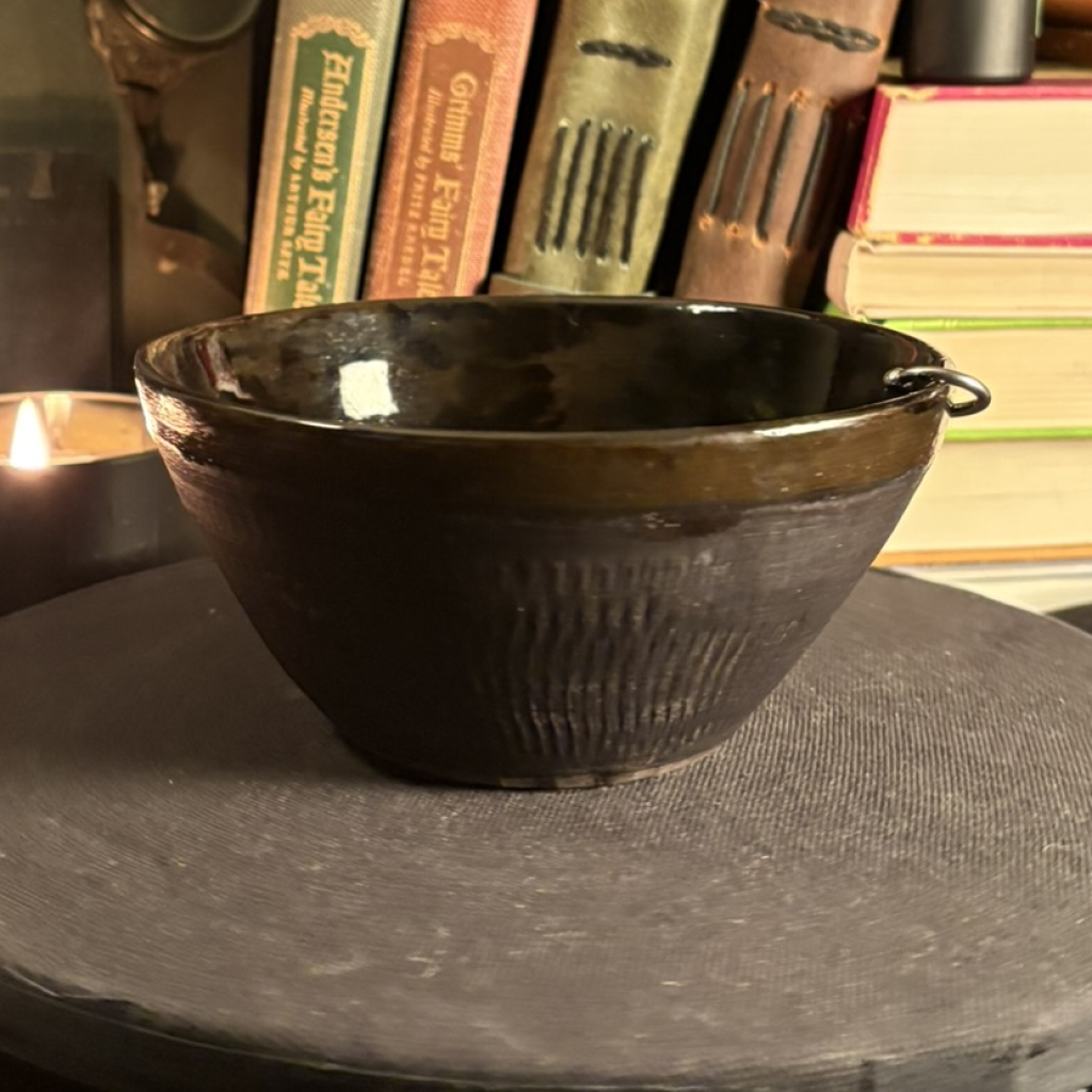 Pigmented with non-toxic iron oxide. Fires to a deep brown/black, deeper black when sealed with a transparent glaze. Not recommended for microwave heating because of its iron oxide content.