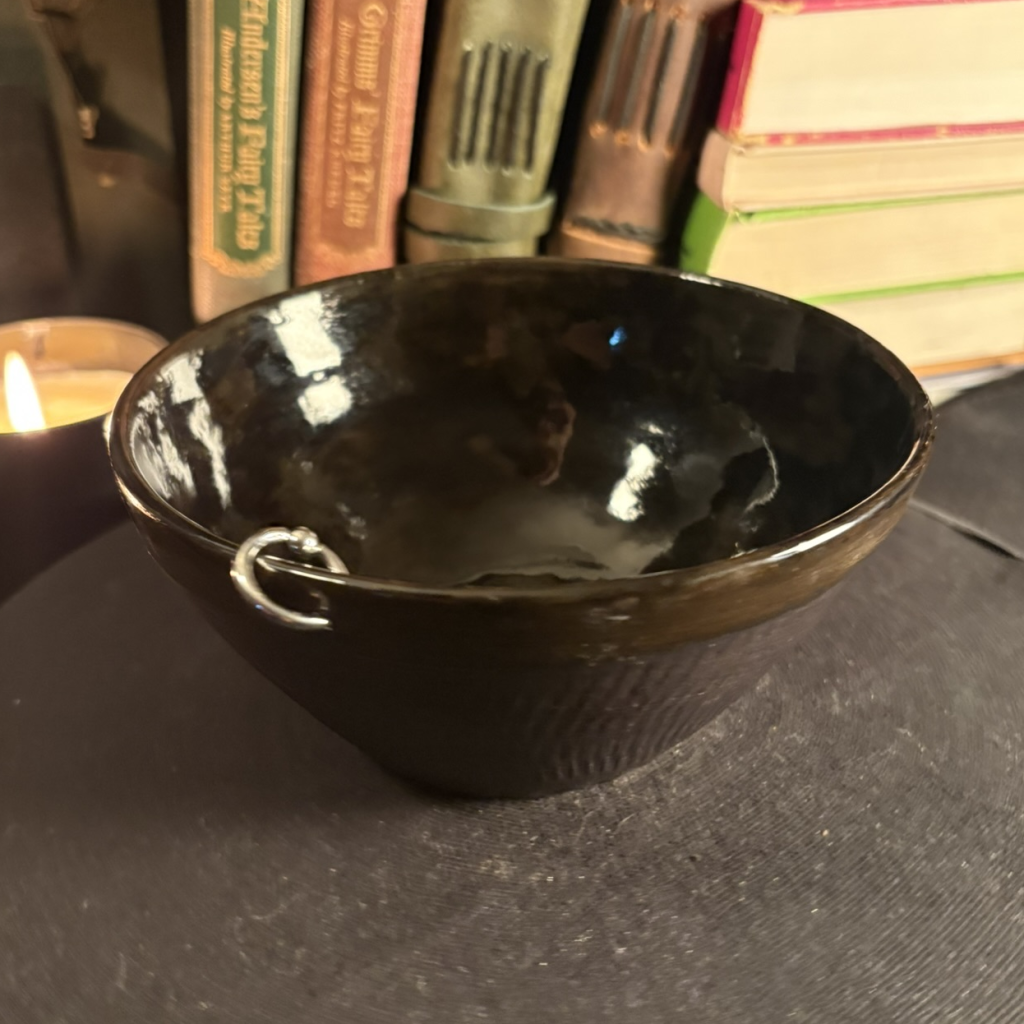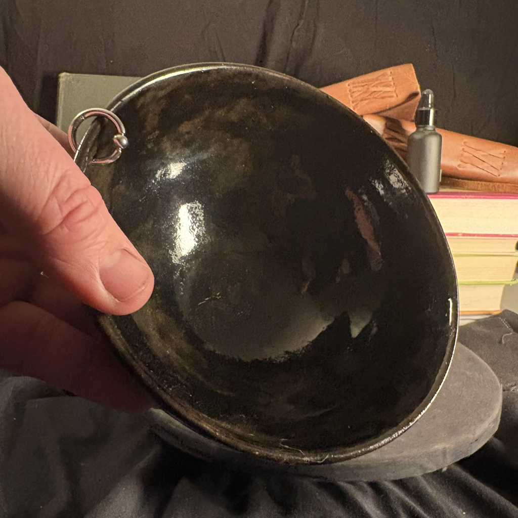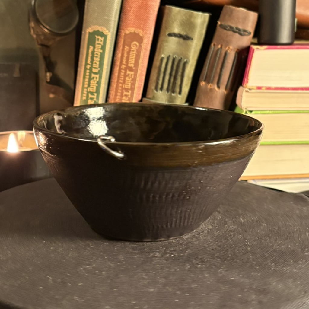 Non-toxic (lead free) matte black, suitable for the exterior of pots. Rigid and durable, but vulnerable to scratches, gives a dark matte surface that resembles cast iron. A slow-drying glaze for brushing and detailed decoration.