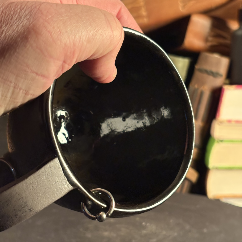 Non-toxic (lead free) matte black, suitable for the exterior of pots. Rigid and durable, but vulnerable to scratches, gives a dark matte surface that resembles cast iron. A slow-drying glaze for brushing and detailed decoration.