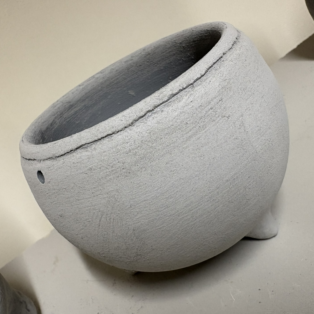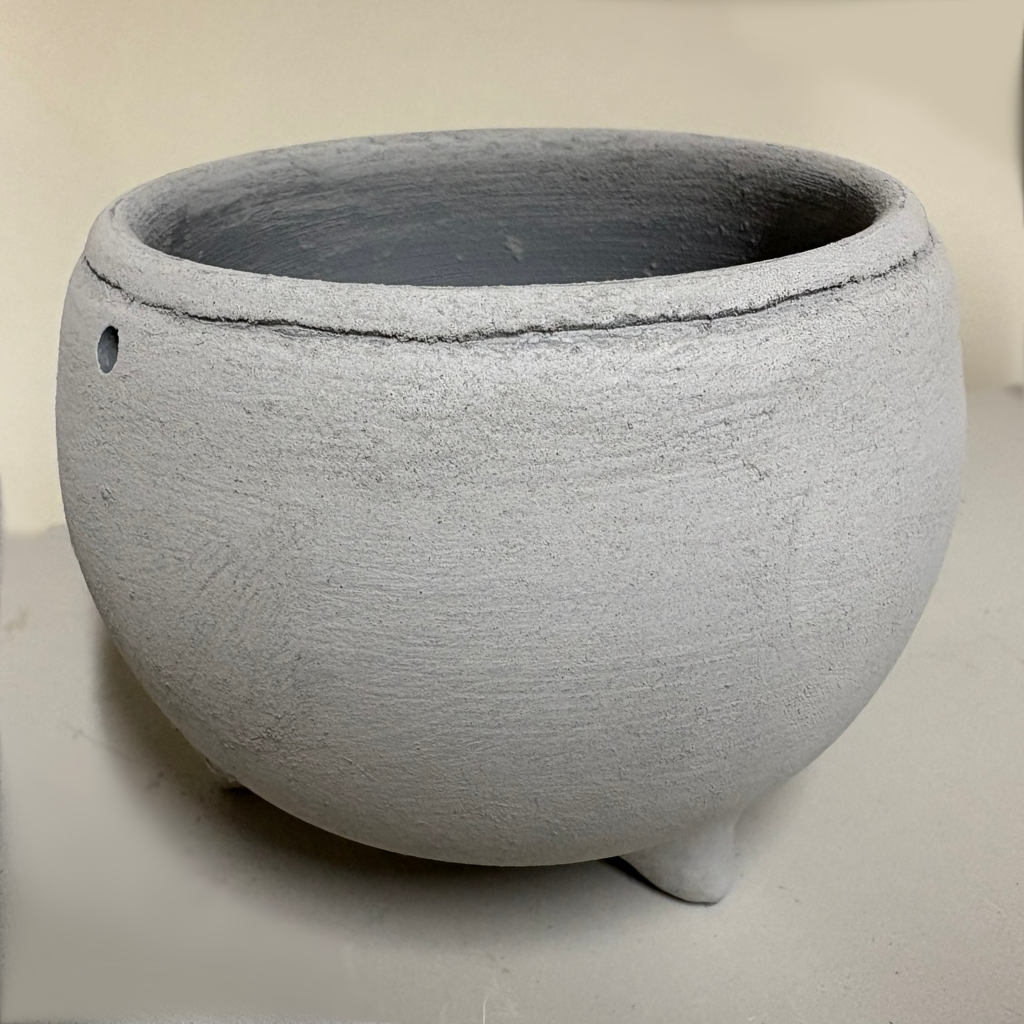 round cauldron with three petite feet, ridged rim