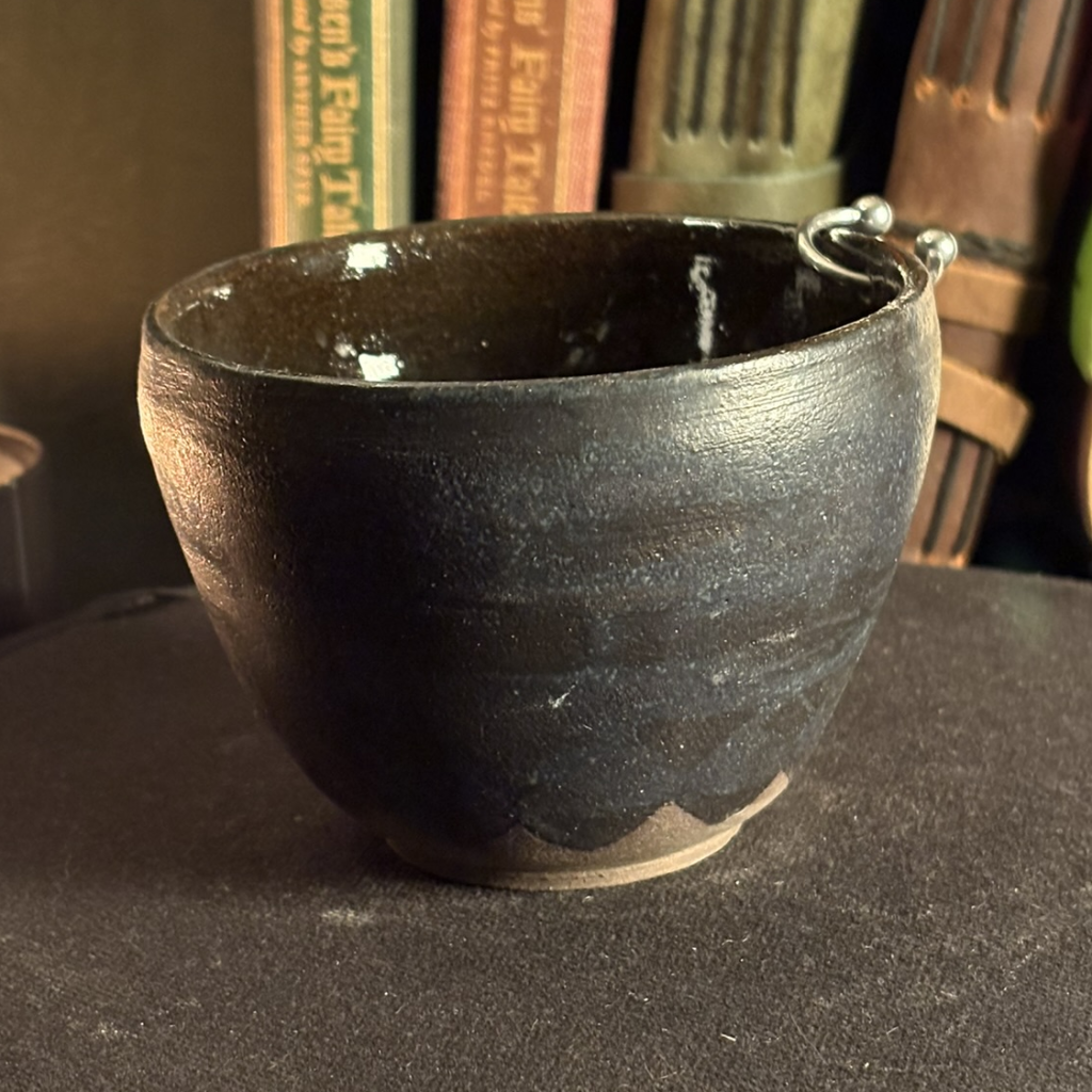 Non-toxic (lead free) matte black, suitable for the exterior of pots. Rigid and durable, but vulnerable to scratches, gives a dark matte surface that resembles cast iron. A slow-drying glaze for brushing and detailed decoration.