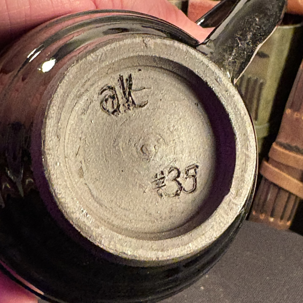 Glossy black glaze, made with iron oxide and cobalt carbonate. Food-safe, non-toxic. Recipe: https://glazy.org/recipes/3388