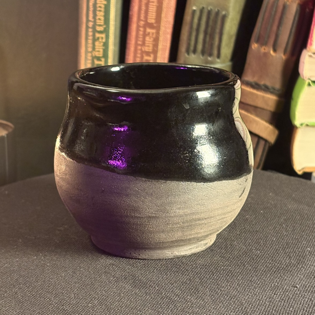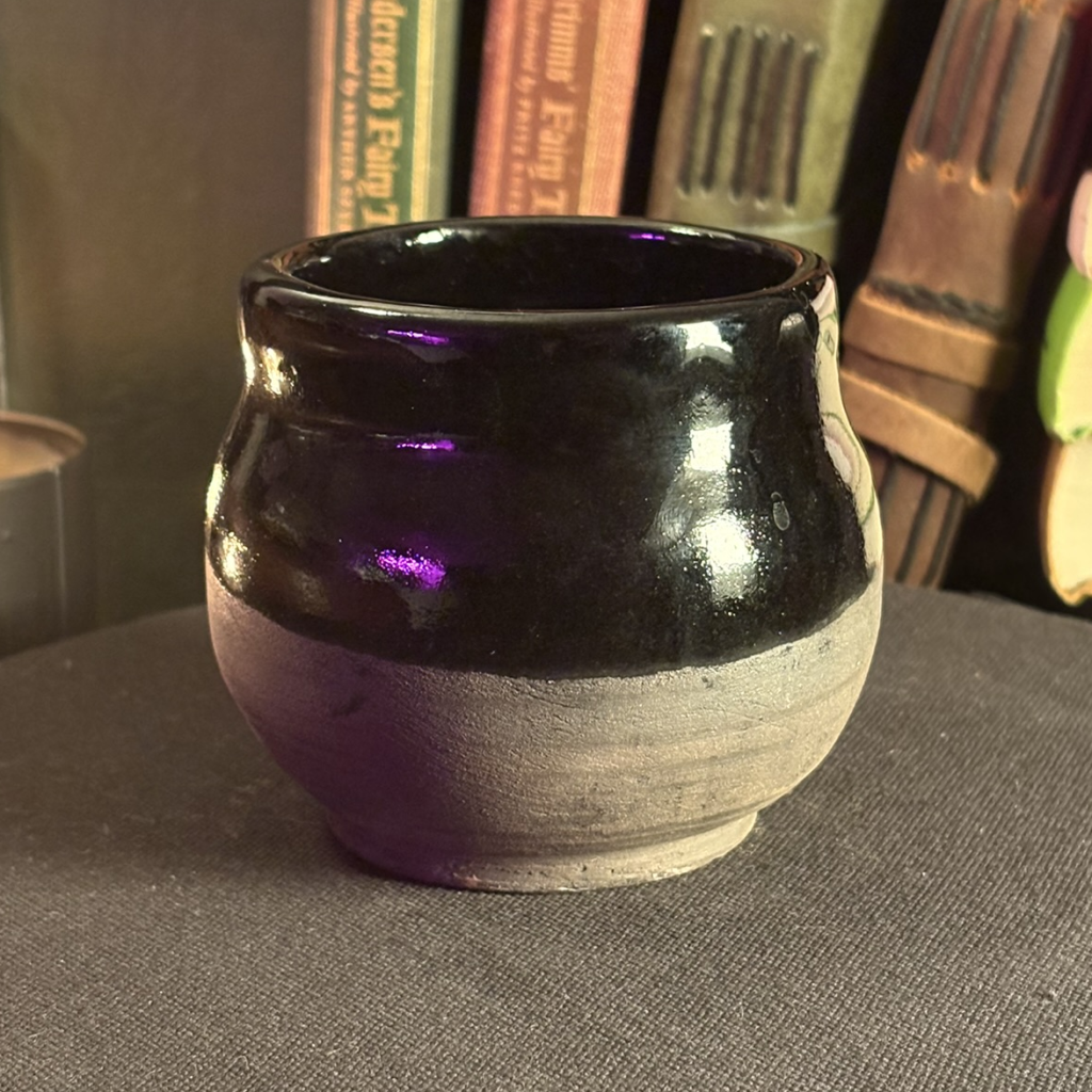 Glossy black glaze, made with iron oxide and cobalt carbonate. Food-safe, non-toxic. Recipe: https://glazy.org/recipes/3388