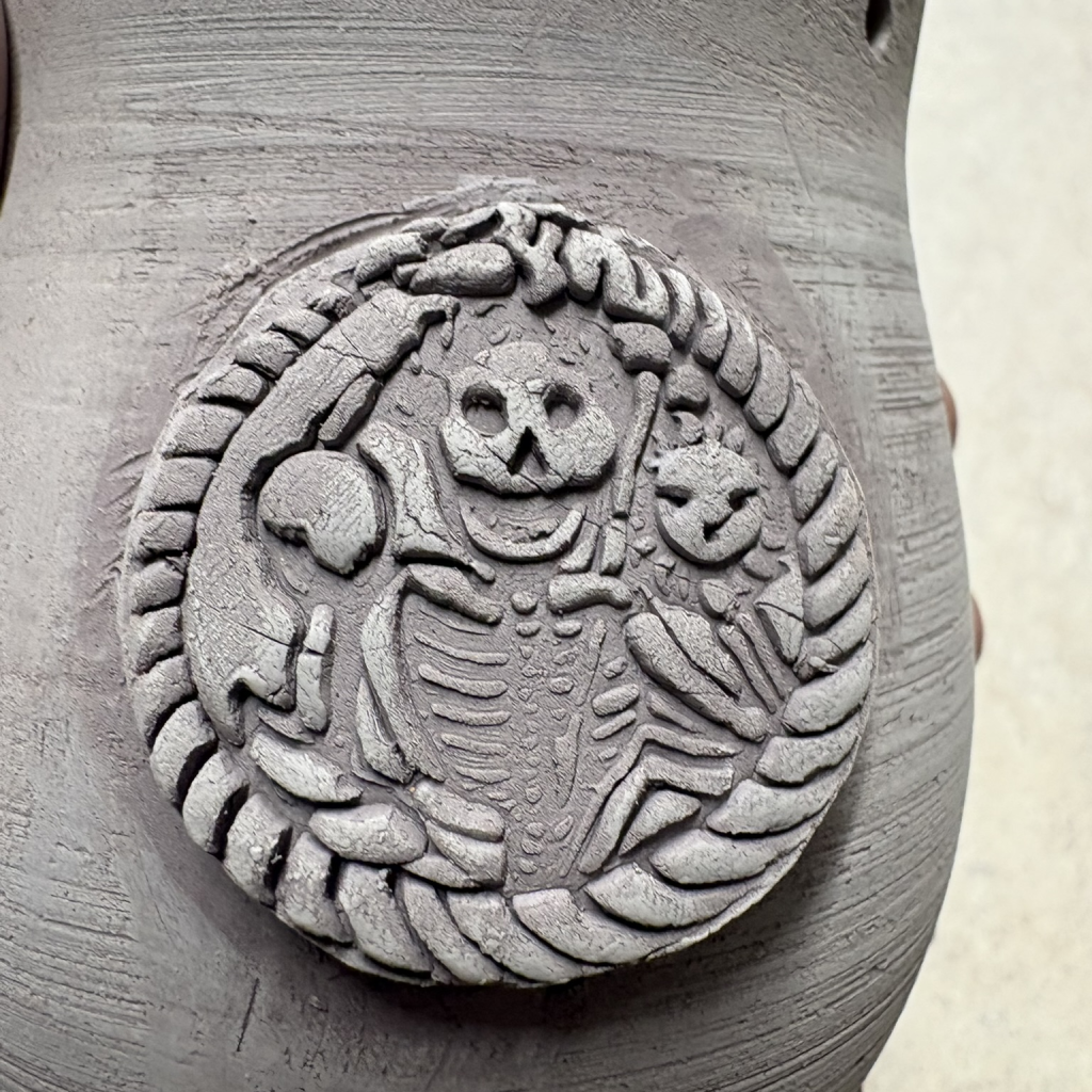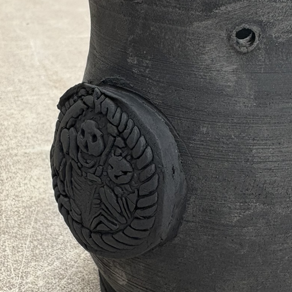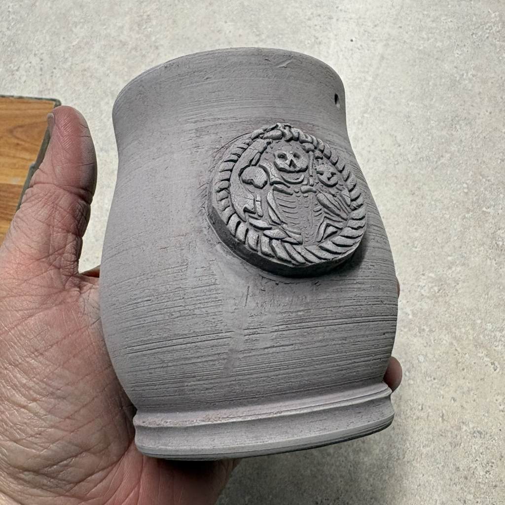 Pigmented with non-toxic iron oxide. Fires to a deep brown/black, deeper black when sealed with a transparent glaze. Not recommended for microwave heating because of its iron oxide content.